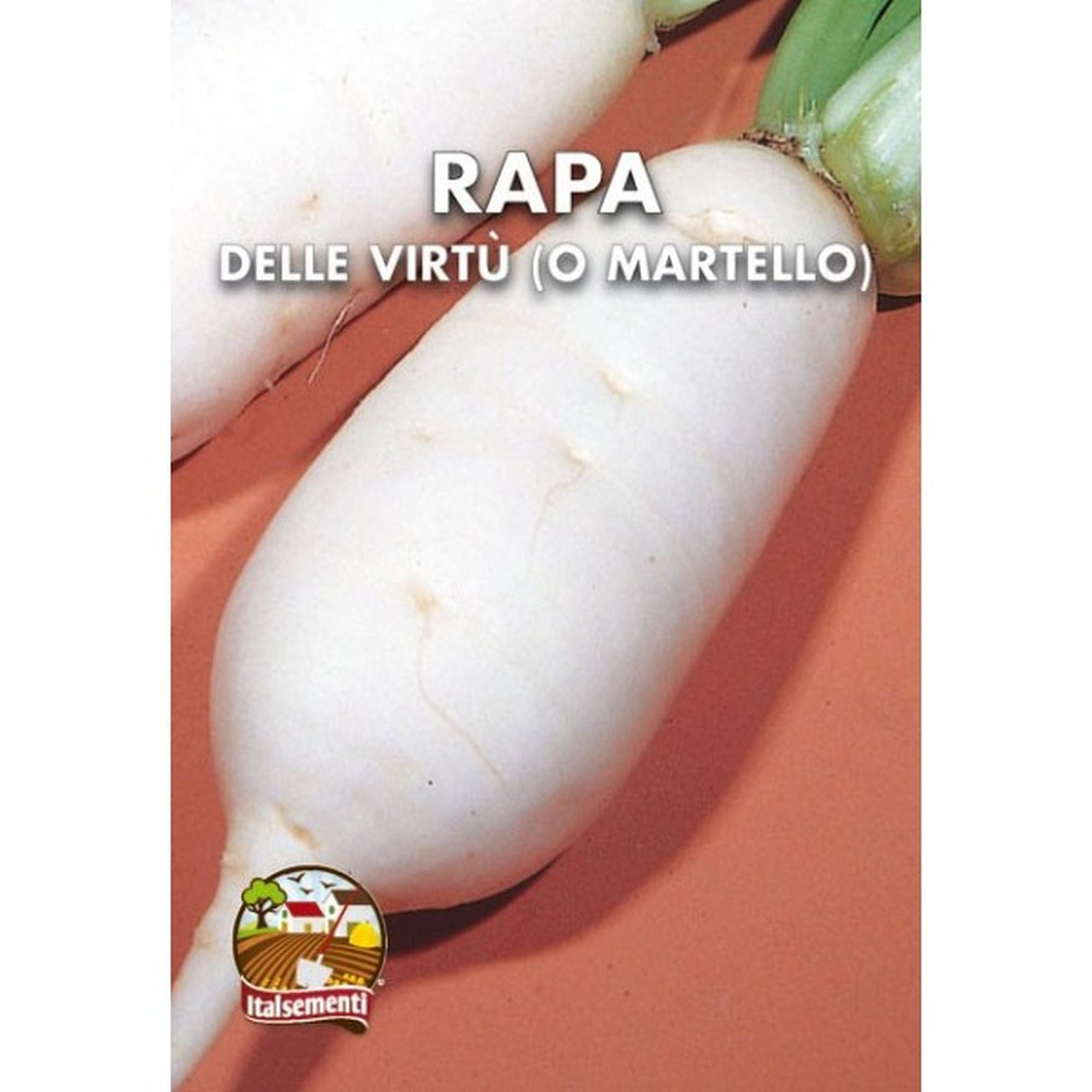 Rapa delle virtù o Rapa martello, produce una radice oblunga e clava, di colore bianco, con polpa tenera e dolce.