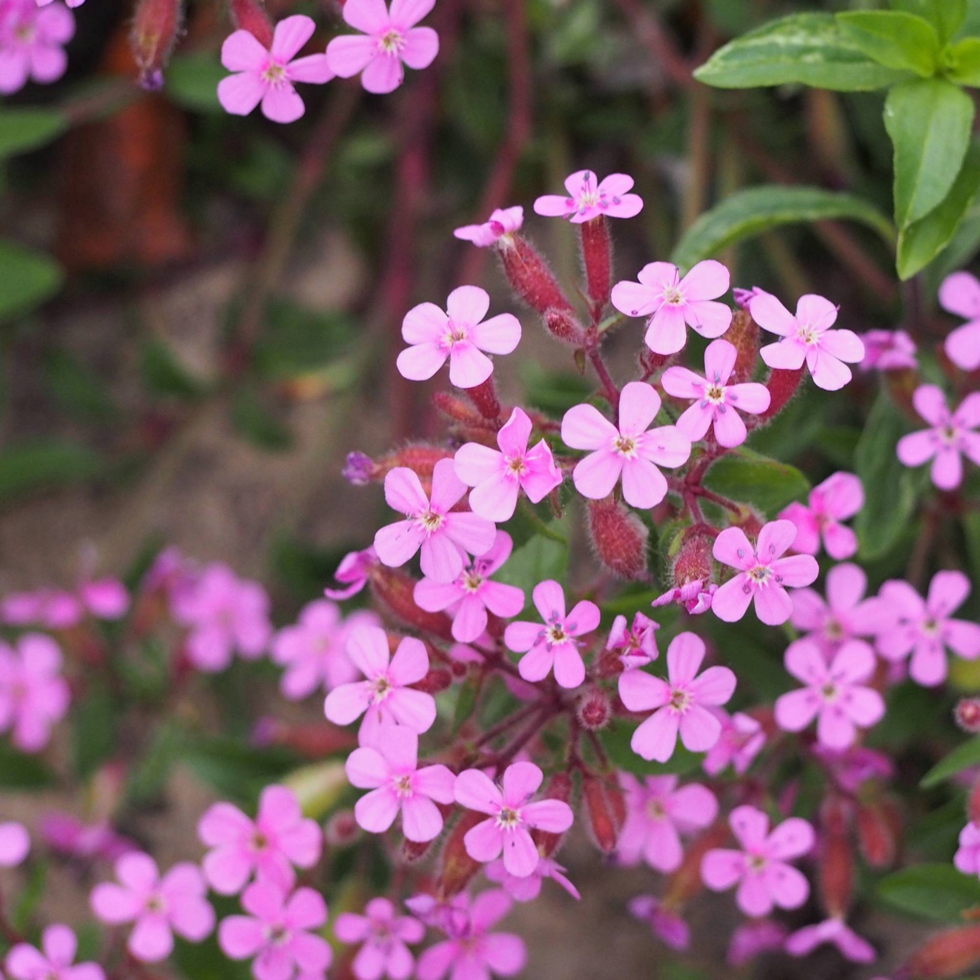 La pianta di Saponaria ocymoides è una perenne espansa che forma piccoli cuscini striscianti, molto ramificati e foglie pelose, ovato-lanceolate, verde brillante, lunghe fino ad 1 cm. Sviluppa grappoli di fiori rosa, larghi 1 cm, riunti in cime simili a pannocchie, che sbocciano in estate. Coltivata per la profusione dei fiori, è ideale utilizzata come tappezzante o nei giardini rocciosi.